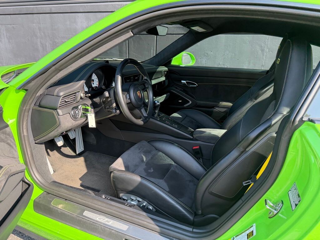 You are looking at a 2018 Porsche 911 GT3 with 17,389 miles. The options include: LED Headlights with Porsche Dynamic Light System (PDLS), Fuel Cap with Aluminum Look Finish, 6-speed GT Sport Manual Transmission, Front Axle Lift System, Porsche Ceramic Composite Brakes (PCCB), Chrono Package with Preparation for Lap Trigger, Extended Range Fuel Tank, 23.7 gal, Automatically Dimming Mirrors with Integrated Rain Sensor, Light Design Package, Steering Wheel and Gear Lever/Selector in Black Leather, Adaptive Sport Seats Plus (18-way), Seat Heating, Smoking Package, Luggage Net in Passenger Footwell, Fire Extinguisher, Vehicle Keys Painted and One Key Pouch in Leather, Instrument Dials in White, Sport Chrono Stopwatch Dial in White, Seat Belts in Racing Yellow, Interior Trim in Leather in Interior Color i.c.w. Leather Interior, Dashboard Trim Package in Leather, Extended Deviated Stitching Interior Package, Steering Column Casing in Leather with Deviated Stitching, Center Console Tunnel Sides in Leather, Sport Seats Plus Backrest Shells and Trim in Leather with Deviated Stitching, Floor Mats with Deviated Carpeting, Leather Edging, and Stitching, Sun Visors in Alcantara All offers are without engagement and not binding. Subject to errors and prior sale. 2 / 2, Door Trim Package in Leather/Alcantara, Storage Compartment Lid in Alcantara with Porsche Crest, Seat Belt Outlet Trims in Alcantara, Pedals and Footrest in Aluminum, Personalized Door Sill Guards in Stainless Steel, Illuminated, Voice Control, BOSE Surround Sound System, Color Selection for Stitching in Deviated Thread